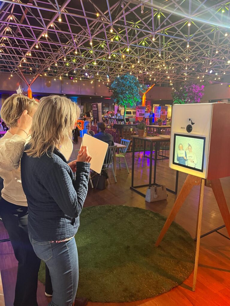 Poseer met zijn tweetjes of met een hele groep! De foto’s worden direct in tweevoud geprint, dus je gasten nemen altijd een leuke herinnering mee naar huis.
