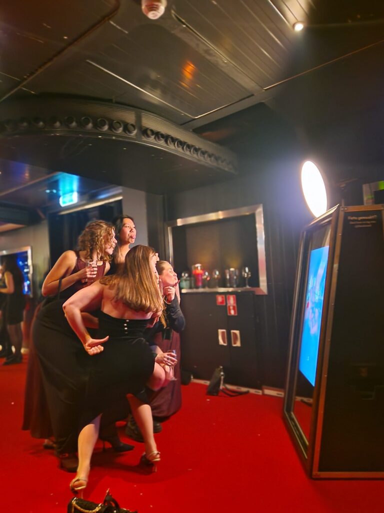 De photobooth is volledig geautomatiseerd. Pak leuke props en klik op GO op de touchscreen. Je kunt via de live preview jezelf zien, zodat je pose nog even perfect kan maken. De photobooth telt af van 3 naar 0 seconden en blijf lachen tot de flits! Daarna nog twee foto’s en je serie is compleet. Je krijgt een preview van je fotostrookje te zien met de optie 2x of 4x printen.